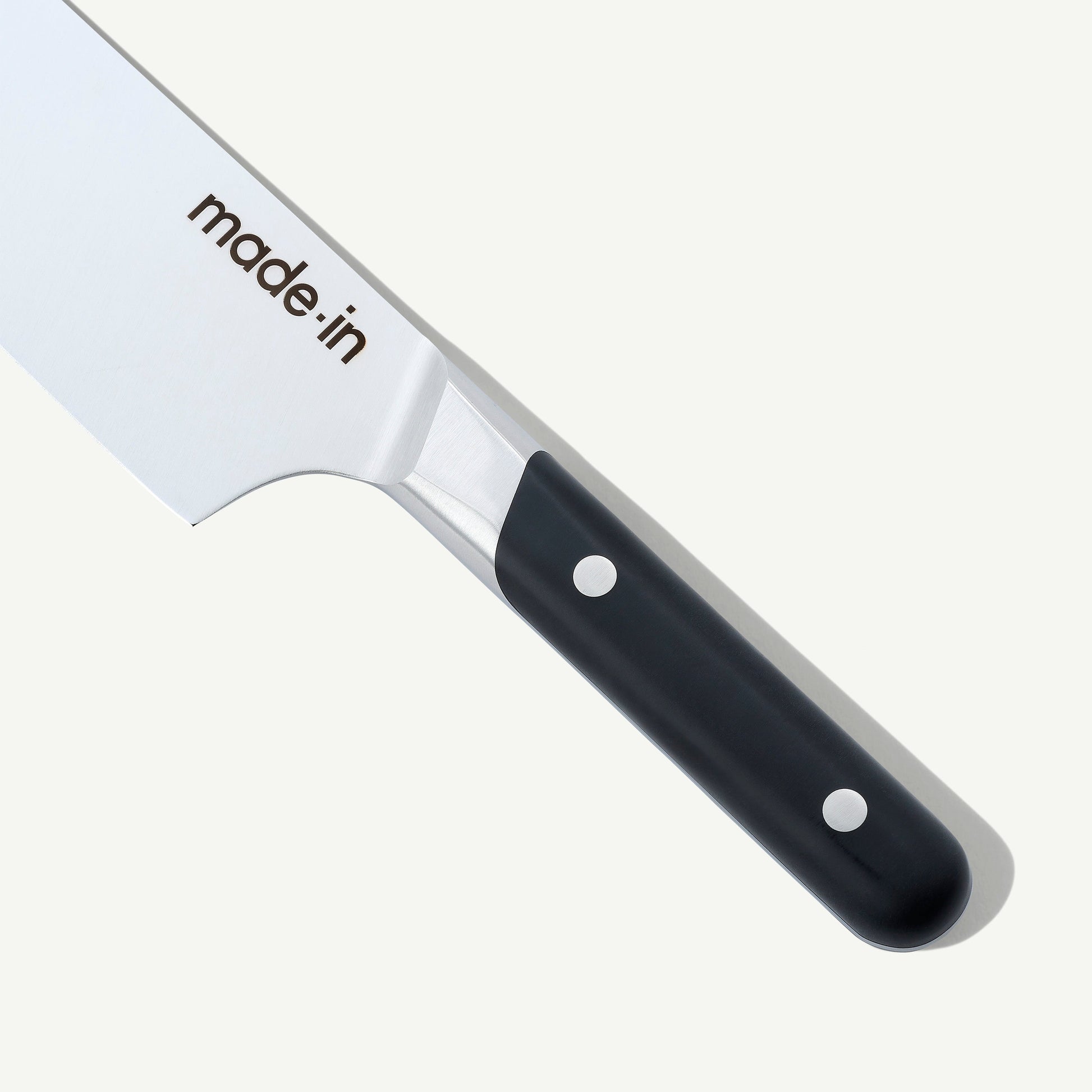 Our Chef Knife is made from X50CrMoV15 Stainless Steel, which helps make ours high quality and maintain a super sharp edge that does not need to be sharpened as often. Lower quality knives you might find at Henkels, Wusthof classic, or shun, feature high carbon, which will have you pulling out your whetstone more often.