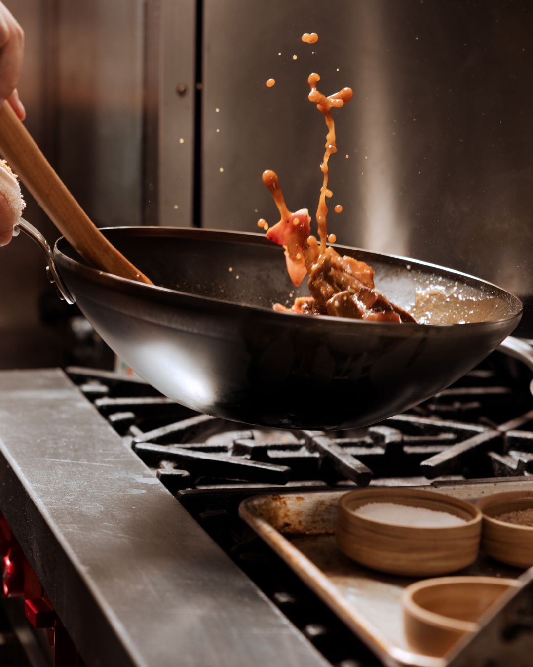 Designed for rapid movement and high heat, the Wok has a flat base to be optimized for all stovetops.