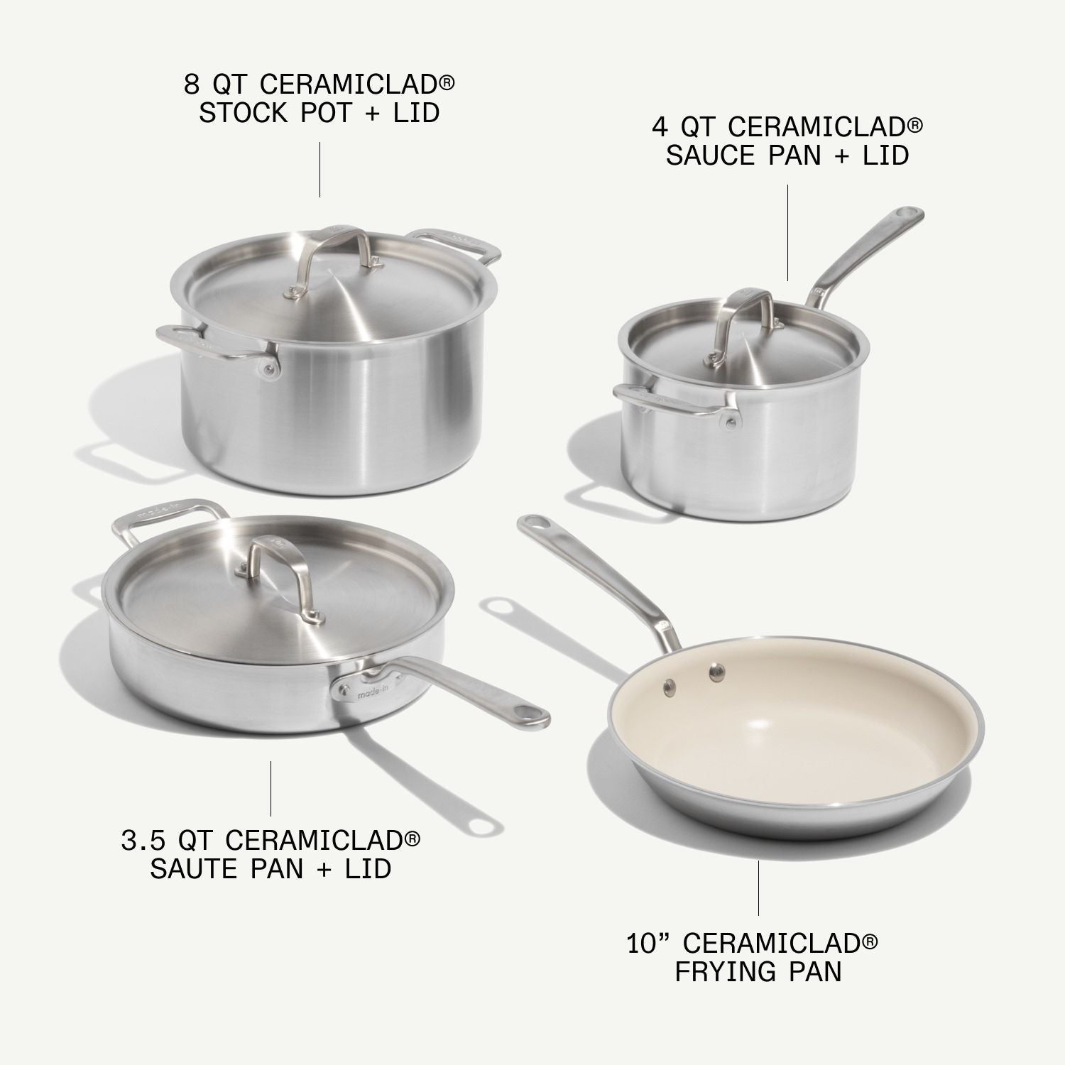 A highly versatile 7-piece set of our premium CeramiClad® Cookware, now including new shapes engineered for high-performance clean cooking.