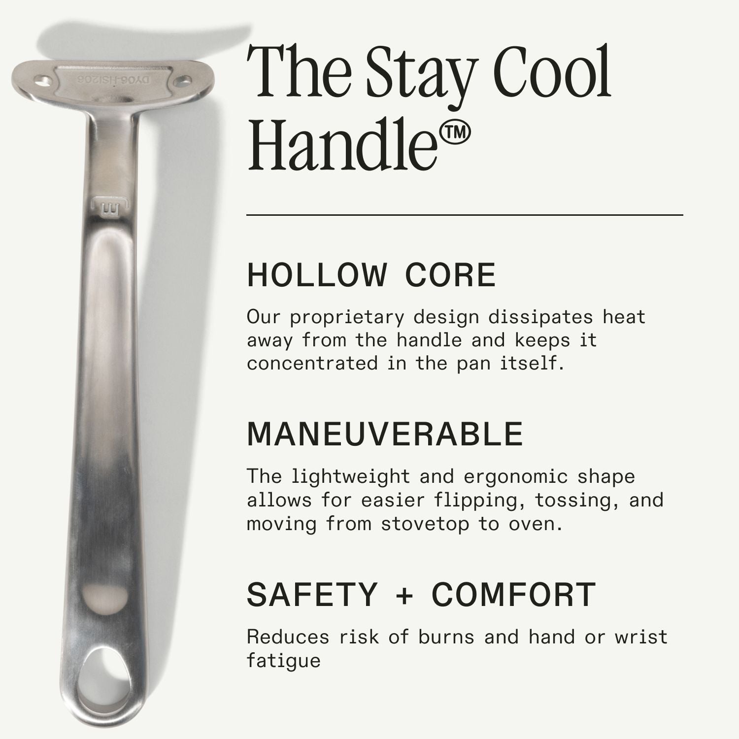 Every pan features a custom-engineered stay-cool handle designed to keep your hand safe—even when the pan’s been on the stove for a while. No towels, no mitts, no surprises. Each handle is securely fastened with industrial-strength stainless steel rivets for rock-solid stability that lasts a lifetime.